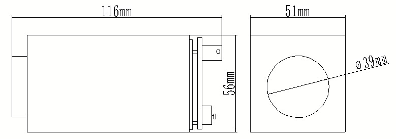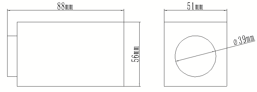 88mm * 51mm * 56mm (116mm * 51mm * 56mm nrog tus tw board) |