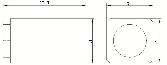 95.5mm * 50mm * 61 hli (124mm * 51mm * 56mm nrog tus tw board) |